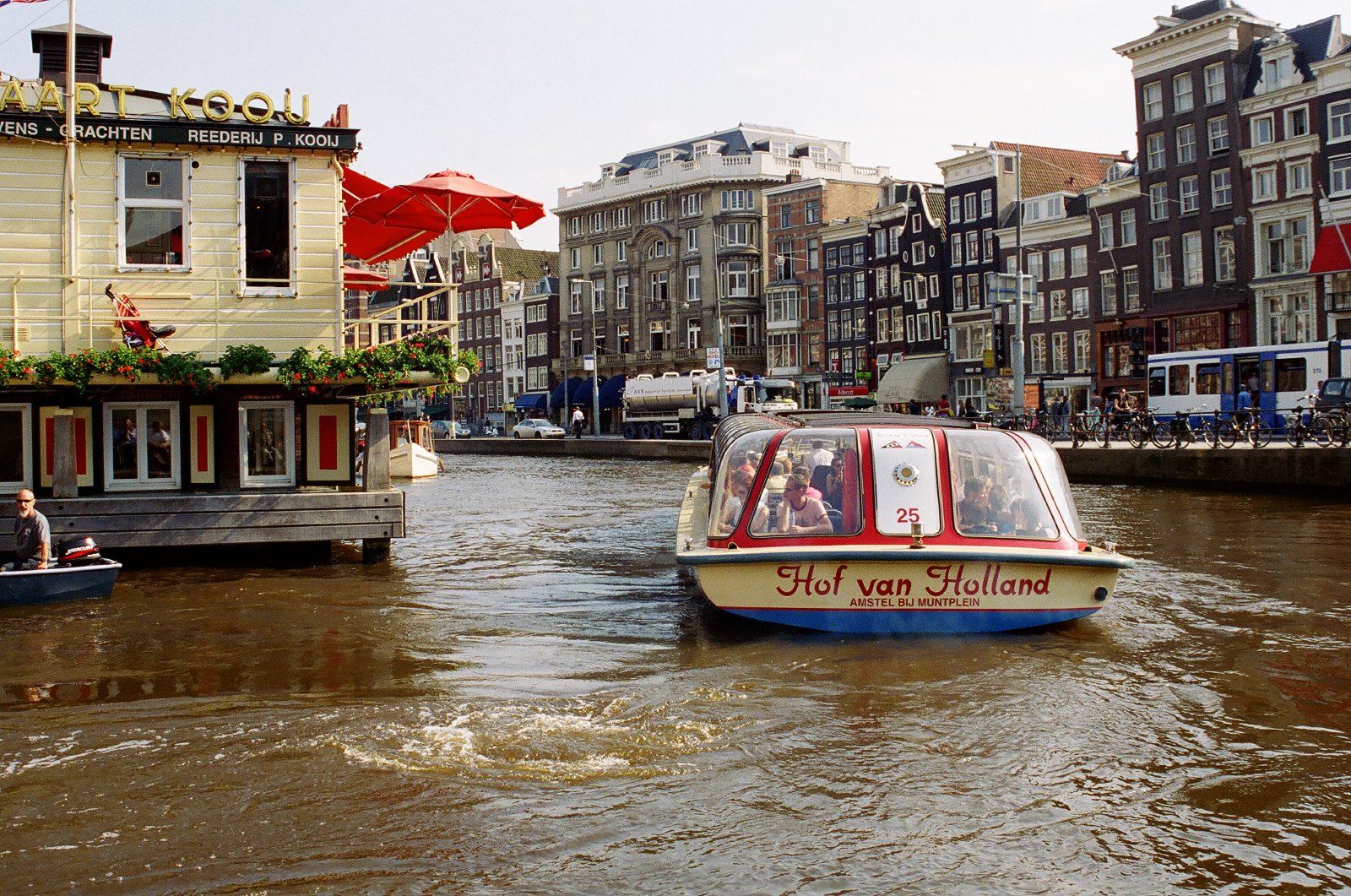 One of many tour boat, taxi boat, restaurant boat from Amsterdam, Netherlands.