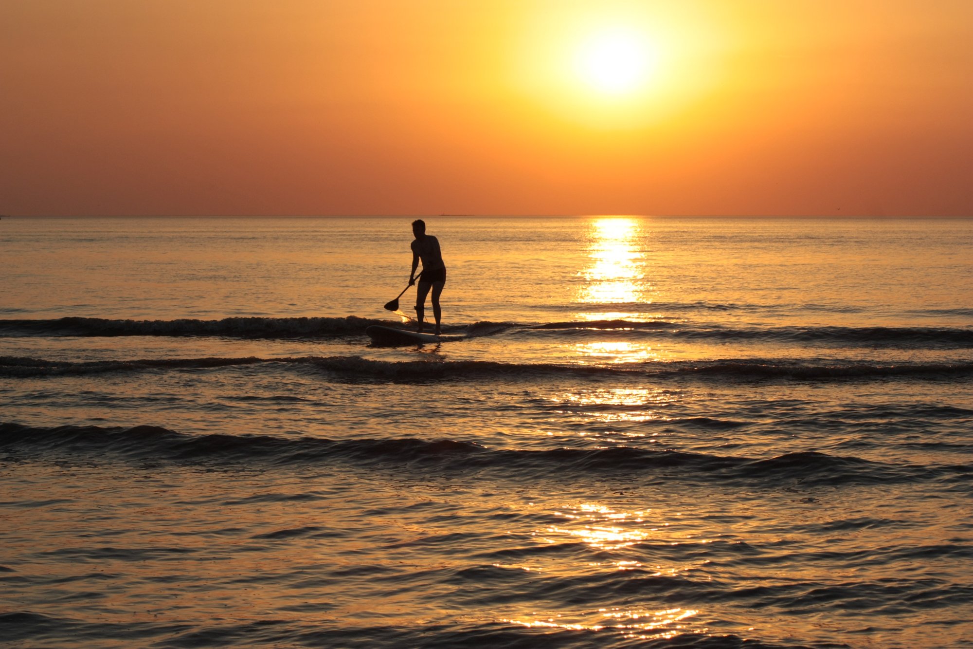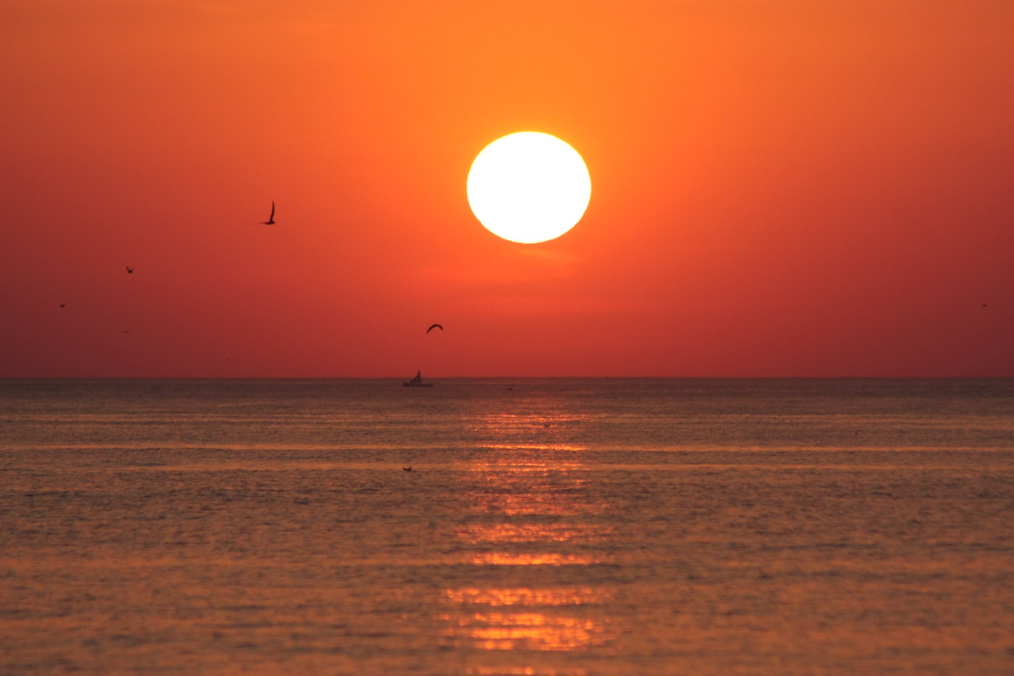 The sun sets on the coast here in the Netherlands. Summer beach, have the spectacle guaranteed.