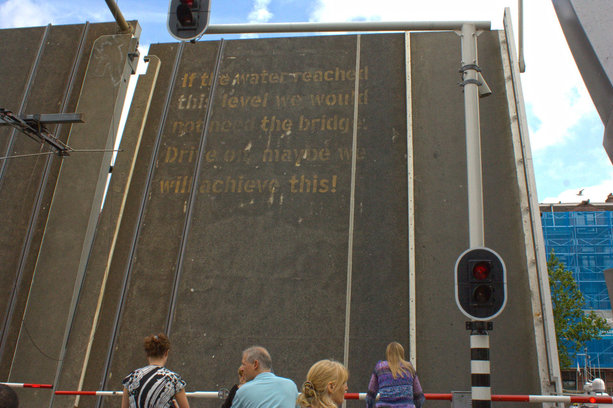 I froze this one in time... Some "vandal" managed that brilliant graffiti on a bridge. Amsterdam, Netherlands.