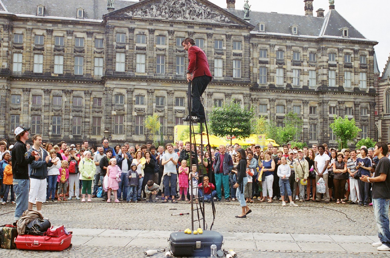 The common entertainers always in the Dam Square stage. Amsterdam, Netherlands.
