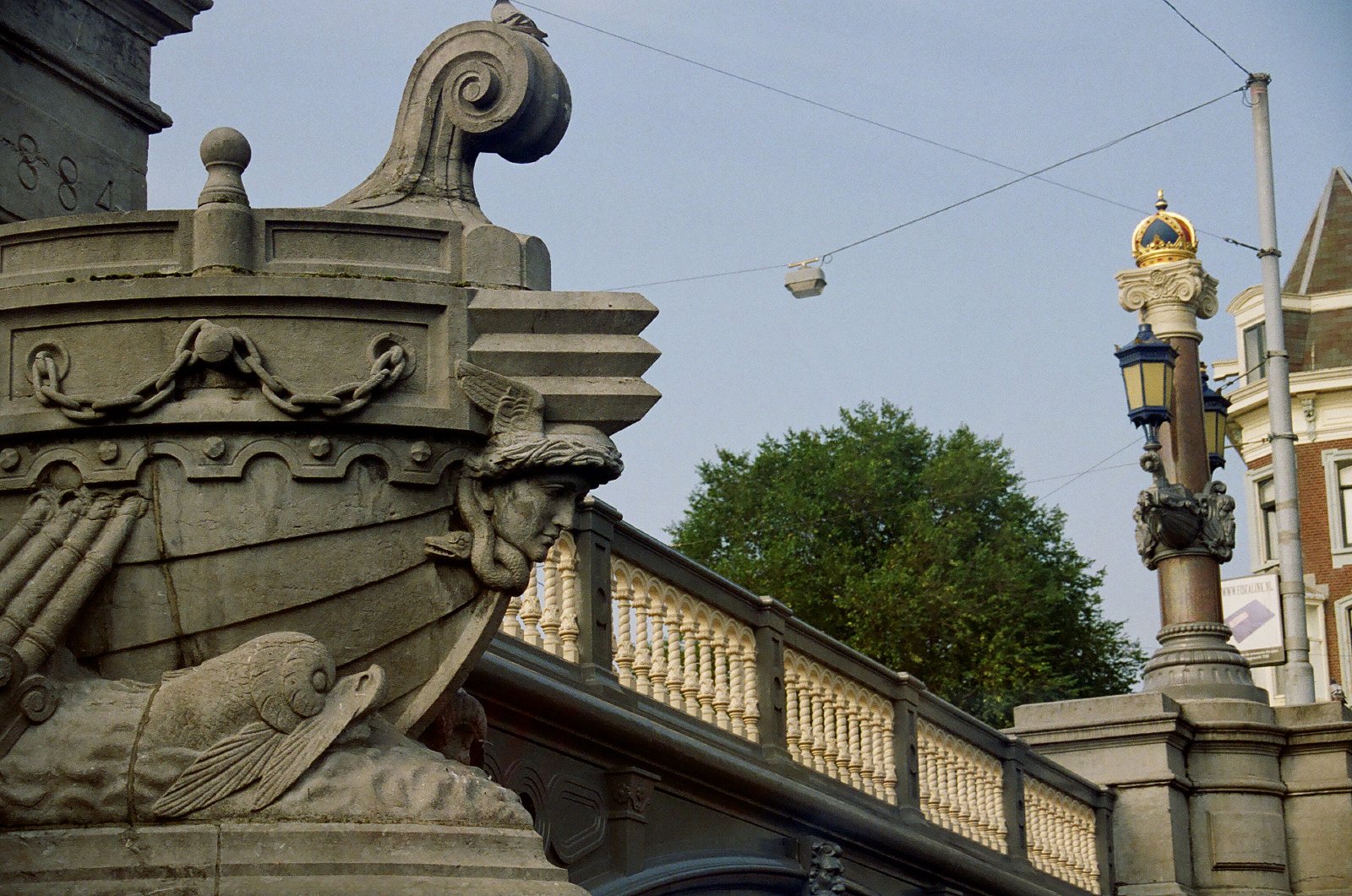 On a boat ride, one of the interesting bridges is the Blauwbrug. Amsterdam, Netherlands.